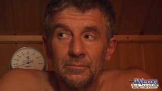 Teen Fucked in the sauna room gives a blowjob sucks old cock