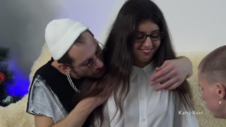 Cuckold licks and cleans pussy of his wife's cum after wife is fucked by lover