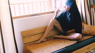Crazy BBW Arab Hijabed Amateur Girl Loves To Smoke Showing Tight Ass