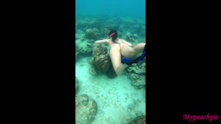Horny girl with a perfect body swimming naked at open sea in Caribe