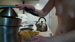 Juicy Babe with Squeezable Cheeks Squeezes Some OJ! Naked in the Kitchen Episode 30