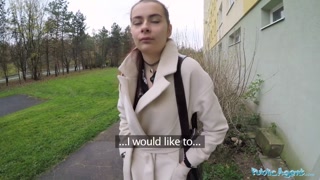 Public Agent Russian student with shaven pussy gets fucked in stairwell