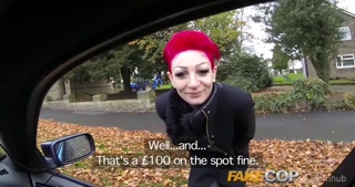 Fake Cop Policeman spunks on her tattoos and tits