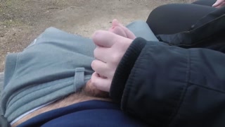 Risky Public Handjob with Cumshot at Lake