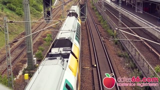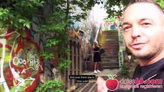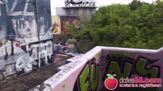 dates66.com Silicon-tits MILF fucks stranger on stairs (PUBLIC)