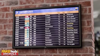 FAKEhub - Posh English blonde MILF gets her mature pussy fucked in first class airport lounge