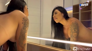 hot brunette gives a blowjob and fucks a lot with her boyfriend with a big dick