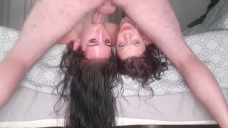 2 girls get upside down throat fuck