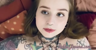 TATTOO GIRL FUCKS herself to smiling Orgasm