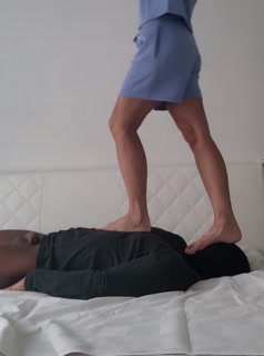 Barbie trampling on her slave's body in slippers and barefoot No.73