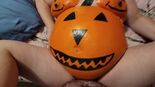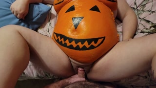 Sexy pregnant pumpkin squirting on big cock