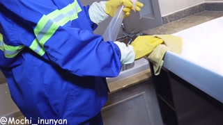 Chinese sanitation worker uniform - foreign object penetration at work, uncontrolled orgasm