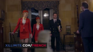 Trio at the hotel with 2 sexy stewardesses