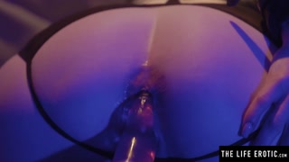 Horny girl with dildos fucking both her tight holes at once