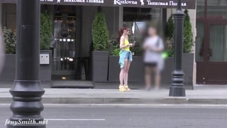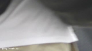Jeny Smith walks in public with transparent shorts. Real flashing moments