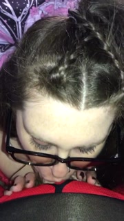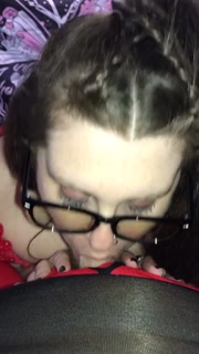 BBW with glasses deepthroats, sucks and swallows daddy’s cumload