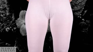 Cameltoe of a woman on fitness without underwear with pussy showing thrue