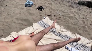 Wife fucks husband and his friend on public beach and gets double creampie / Sloppy seconds