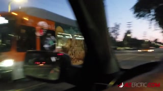 Inked up Mallory Maneater sucks cock in the car
