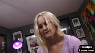 Pantyfetish amateur babe gives POV HJ to her BF in the bed