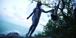 TATTOO piercing dreadhead girl gets tied up by LILY LU on public beach - kinbaku, shibari, bondage