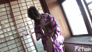Petite Japanese babe uses big toys to satisfy her hairy pussy on the chair