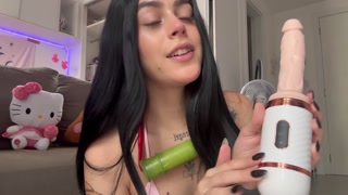 Naughty Nezuko playing with her new sex machine