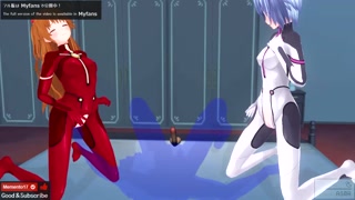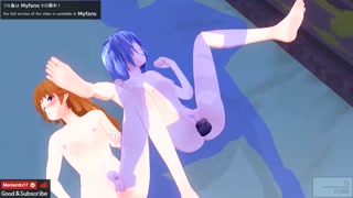 エロアニメ レイ、アスカと3P中出し、レズあり