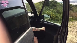 Tattooed Babe Public Play Pussy in the Car - Amateur