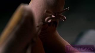 Tiffanys rough dry wrinkled soles getting oiled and give footjob