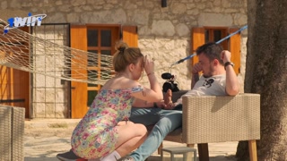 Fuck my girlfriend on the terrace in front of the house! The neighbor was shocked!