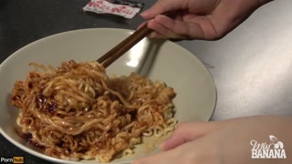 Fire Noodle Challenge while getting Fucked - Miss Banana