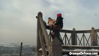 Slutty snow teen fucks grandpas cock