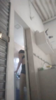 Employee washing boss's clothes in Medellin, Colombia. Big ass latina with her boss