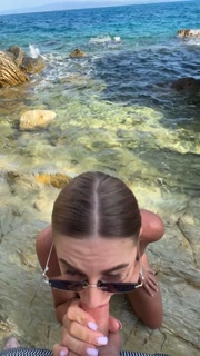 Best blowjob with cum on face and tits from a stranger on the beach