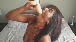 Desi trash whore with body writing humiliating herself | face and pussy slapping | spitting