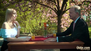 Young blonde moaning fucking an old man she swallows his cumshot