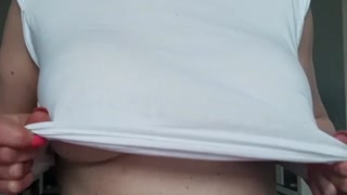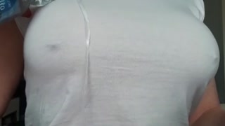 Busty MILF Wetting my T-shirt without Bra and get Orgasm by Pierced Nipples playing