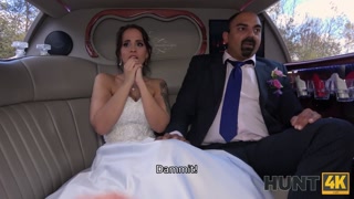 HUNT4K. Excited girl in wedding dress fools around not with future hubby