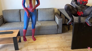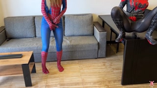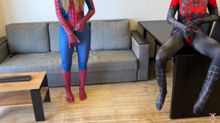 - Oh, no, I was bitten by a black spider! - And I was bitten by a red one. Let's squirt!