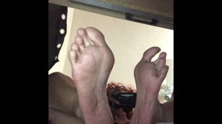 TINY ENJOYS VIEW OF FEET WHILE I PLAY THE GAME