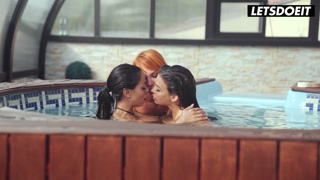 Lesbian Best Friends Lesbian Touching and Kissing in the Pool - A GIRL KNOWS