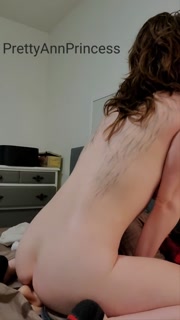 PrettyAnnPrincess- rides big dildo, inserts butt plug, pillow humping tattooed brunette cums hard