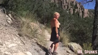 Cumwalk with Big Load Swallow: Blonde With Perfect Tits Sucks Dick Outdoors