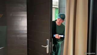 Pizzabud slikkede våd fisse. Cutie spiste kurerens sperm - Eva Soda