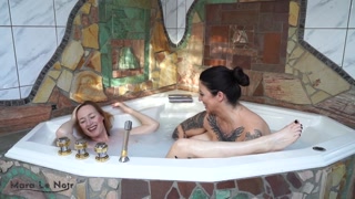 Sexy tattooed BBW Mara and hot ginger Tara enjoying all naked in jacuzzi