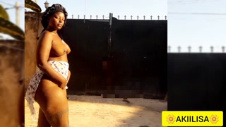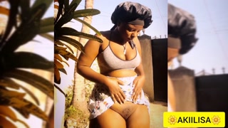 Outdoors: ebony thick babe AKIILISA flashing pussy,tits and ass outside