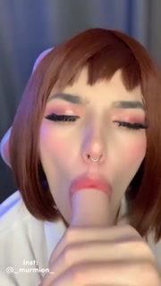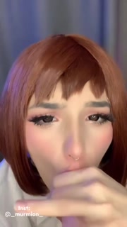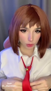 Cosplay Uraraka Ochako sweetly sucks a dildo and jerks off