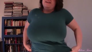 Huge boob tit drop blue shirt
