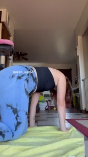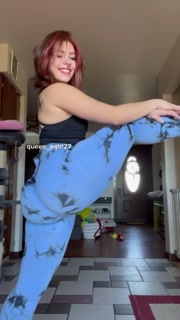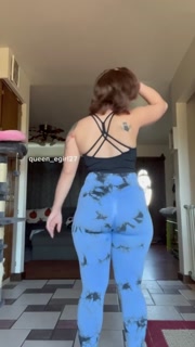 Thick sexy pawg stretches in leggings and strips naked to ride dildo